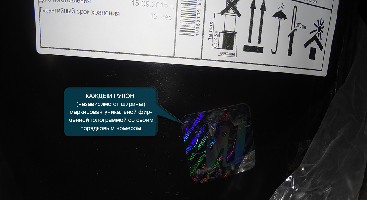 На каждом рулоне размещается номерная голографическая наклейка с уникальным номером.